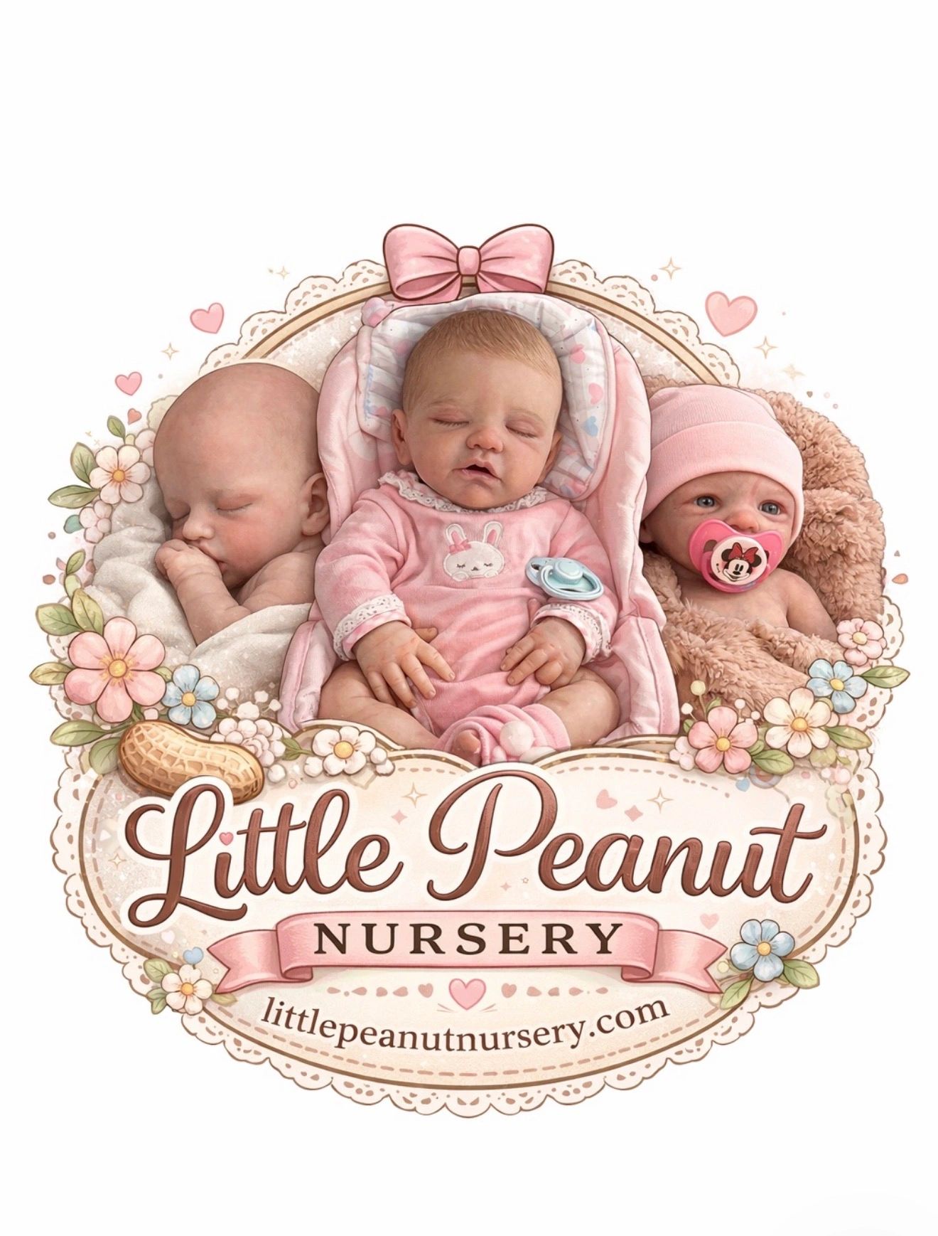 At Little Peanut Nursery, we are dedicated to providing high quality AUTHENTIC silicone and vinyl reborn, all with COA by both the sculptor and the reborn artist. We offer many types of payment options and keep our prices as competitive as possible while providing the most realistic babies for your adoption.
